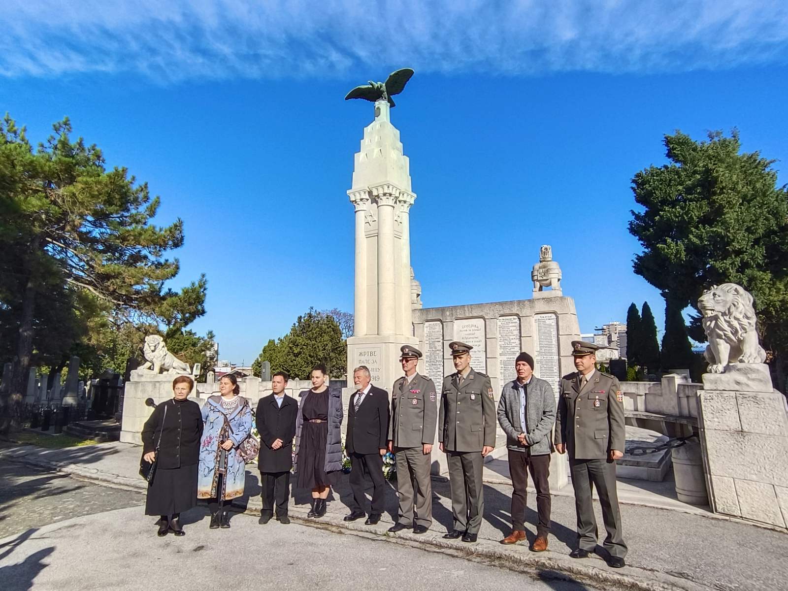 Kraj Spomenika poginulim jevrejskim ratnicima za spas, slobodu i ujedinjenje Otadžbine 1912–1919, na Jevrejskom groblju u Beogradu, venac su položili predsednik Jevrejske opštine Beograd Aron Fuks, predsednik Saveza jevrejskih opština Srbije Aleksandar Albahari, delegacija Vojske Srbije, zamenica ambasadora Izraela u Srbiji Aleksandra Ben Ari, predsednik Jevrejske opštine Pančevo David Montijas, Predsednik Jevrejske opštine Novi Sad Mirko Štark. Ispred Jevrejske opštine Zrenjanin prisustvovalie su i venac položile Ljilja Popov, predsednica i Lidija Radin i Tatjana Milovančev. Venac je položila predsednica Jevrejske opštine Sombor i predstavnik SUBNOR-a Srbije pukovnik u penziji Dragan Pantić.