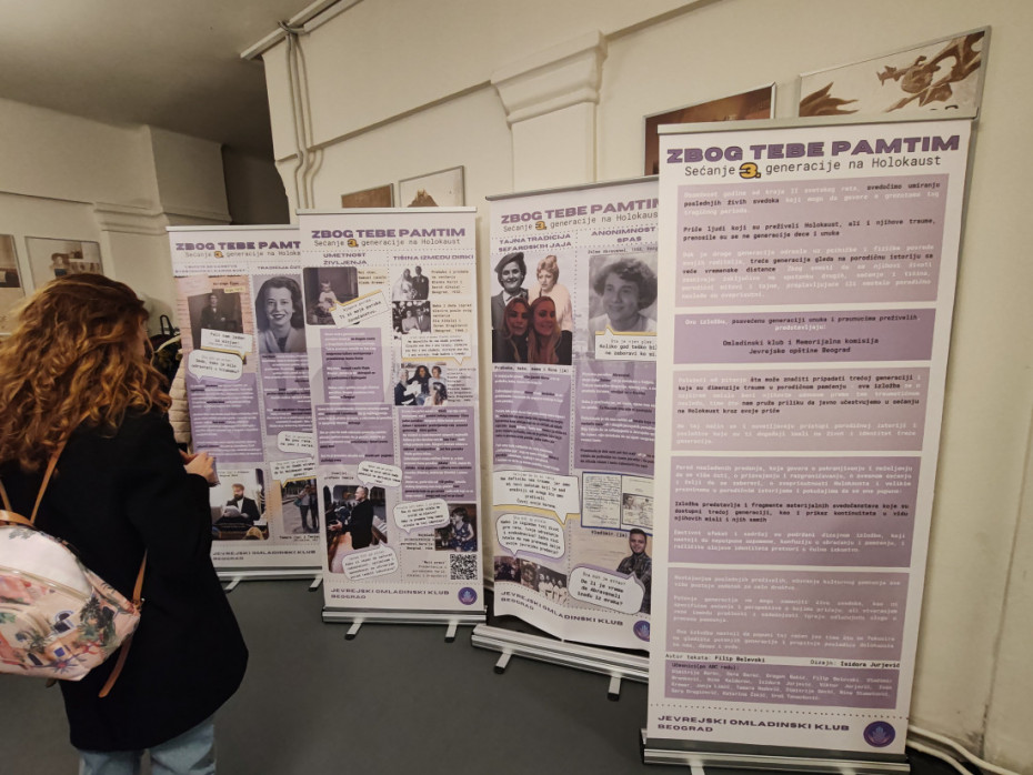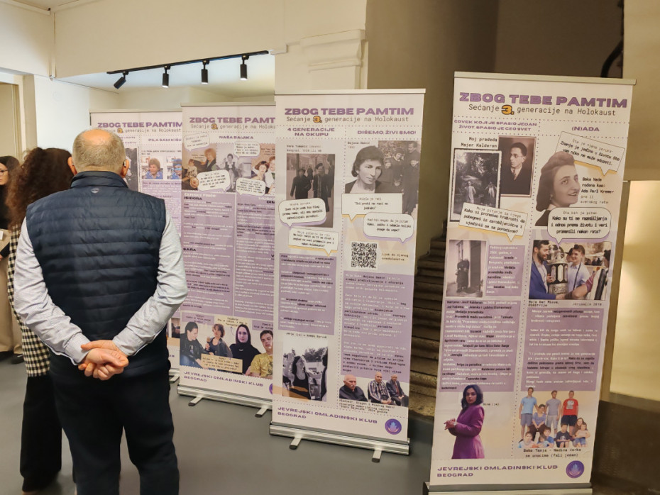 Povodom obeležavanja Međunarodnog dana sećanja na žrtve Holokausta, Omladinski klub Jevrejske opštine Beograd je u ponedeljak, 27. januara, organizovao je izložbu pod nazivom "Zbog tebe pamtim: sećanje treće generacije na Holokaust".