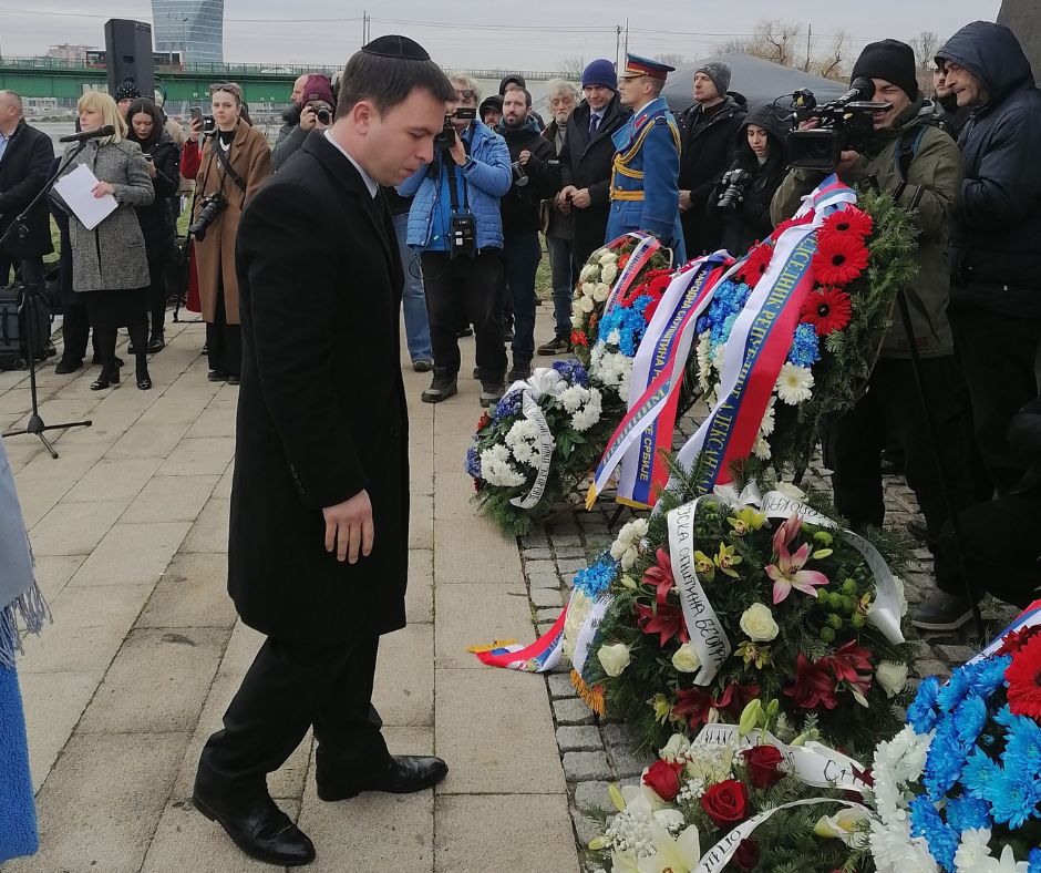 Venac ispred Jevrejske opštine Beograd, položio je predsednik Aron Fuks.
