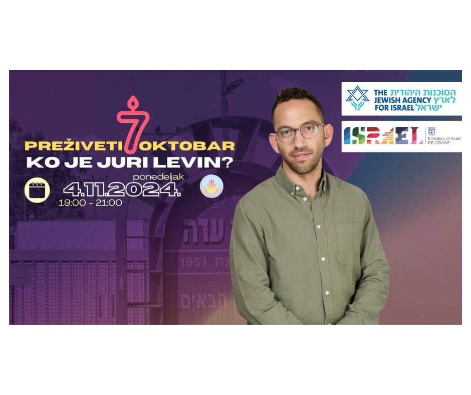 Ambasada Države Izrael u Srbiji i Jevrejski Omladinski Klub Beograd pozivaju vas da iz prve ruke čujete neverovatnu priču Jurija Levina o njegovom bekstvu od terorista Hamasa 7. oktobra 2023.